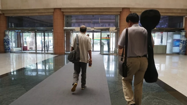 訪談結(jié)束后,目送兩位老師離開(kāi)大樓