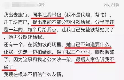 就算代買(mǎi),也得多替對(duì)方考慮,看看人家出去旅行,有沒(méi)有購(gòu)物的打算,而你買(mǎi)這東西,會(huì)不會(huì)影響人家出行。