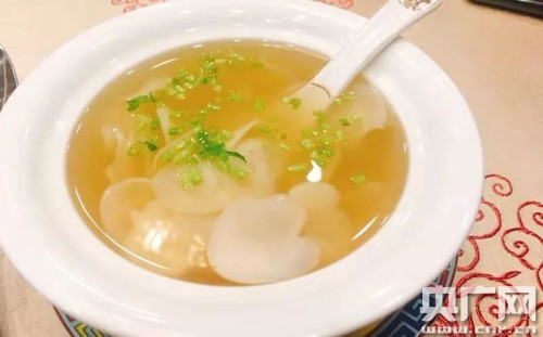 據(jù)說這道菜是毛主席當年最愛吃的一道菜,口感非常的特別。菜的味道就像香水一樣有前味兒、中味兒、后味兒,輕輕的茶色湯,陪著微酸微辣的口感,奇妙~