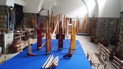 多年來(lái),楊勝文大膽創(chuàng)新,就地取材自制各種民族樂(lè)器。有靈感來(lái)自民間吹火筒的樂(lè)器“雕”,樂(lè)器名來(lái)源于苗語(yǔ)的發(fā)音是DIONG;家用的缸子有特殊的共鳴,于是用牛皮蒙住缸口,自造了“缸子鼓”;苗寨儲(chǔ)存糧食的竹筒,隨意搖擺,即能聽(tīng)到一種悅耳的聲音,于是,類(lèi)似于沙錘的“五谷棒”誕生。不能透露太多,要不節(jié)目中的悅耳音響就失去猜想的意義啦…