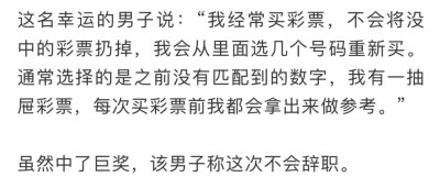 剛開始工作沒多久,男子又中了6100萬南非蘭特(約合人民幣2800萬元) 。