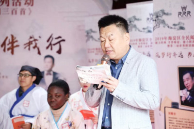 海淀區(qū)人民政府北下關(guān)街道辦事處副主任趙洪耀:“世界朗讀接力大會已經(jīng)舉辦了三屆。在北京市海淀區(qū)文化和旅游局支持下,北下關(guān)街道開展2019年海淀區(qū)全民閱讀系列活動,把“全民閱讀”活動的規(guī)模不斷擴(kuò)大,內(nèi)容不斷充實,形式不斷創(chuàng)新。我們非常高興同時也非常榮幸能夠邀請到眾多的藝術(shù)家、學(xué)者,國際友人和我們熱情的人民群眾一起參與到全民閱讀的活動當(dāng)中,我們也會更加努力去做好公共文化服務(wù)工作,爭取給大家?guī)砀佣鄻踊投嘣娜夯ㄋ囆g(shù)活動!