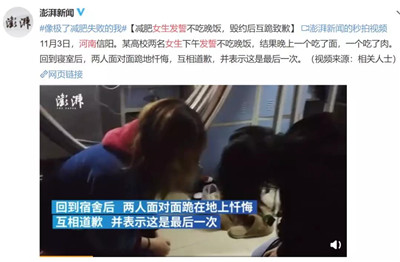 結(jié)果到了晚上都沒(méi)忍住,倆人吃飽了回寢室一頓互相跪拜道歉,被同寢其他同學(xué)拍下來(lái)走紅網(wǎng)絡(luò)。
