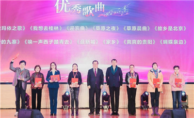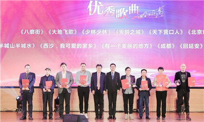 中國文聯(lián)副主席、中國音協(xié)主席葉小鋼,河北省政協(xié)副主席、中國文聯(lián)副主席、中國雜協(xié)主席、河北省文聯(lián)主席邊發(fā)吉為入選“歌聲唱響中國”——最美城市音樂名片優(yōu)秀歌曲獲獎代表頒獎