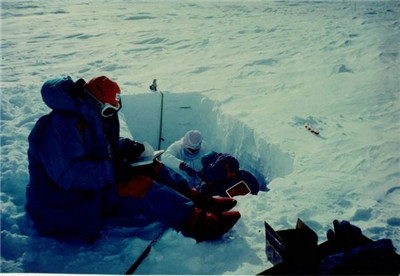 因?yàn)槟蠘O冰蓋上的降雪不會融化,所以,在年復(fù)一年的低溫和重力作用下,雪的密度逐漸增加,最后形成冰川冰。在這個(gè)過程中,來自大氣乃至外太空的物質(zhì)都會首先沉降到冰蓋表面雪內(nèi)。因此,只要采集到雪坑和表層雪樣,結(jié)合剖面上雪的物理結(jié)構(gòu)變化,再加上對雪樣進(jìn)行化學(xué)分析,可以獲得地球氣候環(huán)境變化的許多定量的信息,這對于冰川學(xué)和氣候變化研究有重要意義。秦大河的科考工作就是沿橫穿路線觀測南極冰蓋表面的地形地貌,每55公里挖掘一個(gè)1米深的雪坑,觀察記錄雪層剖面,采集雪樣。