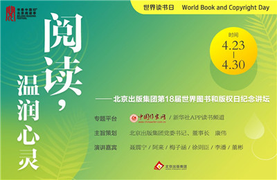 4月23日起,作為北京出版集團(tuán)品牌活動之一,集團(tuán)攜手新華社APP讀書頻道、中國作家網(wǎng)舉辦“閱讀,溫潤心靈——北京出版集團(tuán)第18屆世界圖書和版權(quán)日紀(jì)念講壇”活動。講壇邀請了韜奮基金會理事長、著名出版人、作家聶震寧,著名作家、茅盾文學(xué)獎獲得者、四川省作協(xié)主席阿來,兒童文學(xué)作家、上海師范大學(xué)教授、“擺渡船”船長梅子涵,著名作家、茅盾文學(xué)獎獲得者、《人民文學(xué)》副主編徐則臣,全民閱讀形象大使、中央廣播電視總臺央視《讀書》欄目制片人、主持人李潘,中央廣播電視總臺央廣文藝記者、主持人董彬,通過線上音頻、視頻的方式發(fā)表主題演講,暢談關(guān)于讀書、寫作以及出版的感悟。