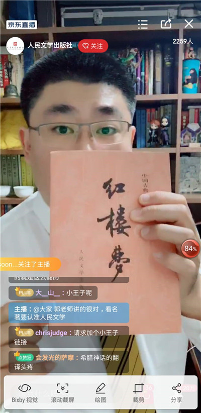此外,活動當(dāng)天,伯鴻書店店鋪上新,推出限量福袋和紅樓主題文創(chuàng)產(chǎn)品,店員小姐姐帶領(lǐng)讀者“云探店”,一窺伯鴻書店真容。在全天的直播活動中,新浪微博、微信小程序、抖音、京東、當(dāng)當(dāng)?shù)榷鄠平臺,均安排了精彩刺激的抽獎環(huán)節(jié),點校本二十四史修訂本《金史》、《紅樓夢(注解本)》、《江湖叢談》……廣受讀者追捧的新書好書,答對問題即有機(jī)會獲得,豐厚的禮品讓讀者線上留言多多,收獲滿滿。