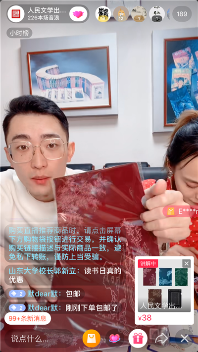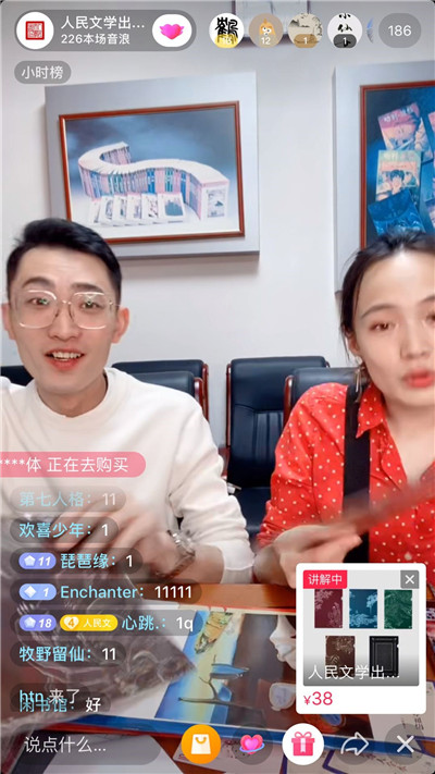 除了這些傳統(tǒng)活動的網(wǎng)絡(luò)延伸之外,小文還注意到超級多的出版社,進(jìn)行了花樣繁多的互聯(lián)網(wǎng)直播讀書會,各個文化群里的作者講座,或者在抖音淘寶等平臺進(jìn)行了帶貨。比如:人民文學(xué)出版社,在抖音直播上帶貨上,留下了“你買的不是撲克是文化”的金句。