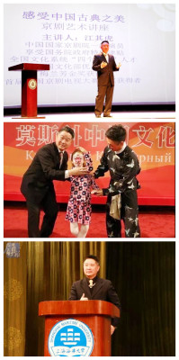 每次講座他都耐心細致地為大家介紹了京劇作為國粹的200多年悠久歷史,從京劇的三美—“綜合之美、虛擬之美、程式之美”到京劇大開大合的唱腔、生動有力的表演,將中華民族的忠孝節(jié)義禮義廉恥,這些核心價值寄托在一個個生動的故事之中。為觀眾的心中種下了京劇文化的種子,讓大家重拾起逐漸被新一代年輕人忽視的傳統(tǒng)國粹。同時,江其虎也認為京劇可以通過優(yōu)秀的翻譯是完全有可能被外國觀眾接受的,甚至即使不了解內(nèi)容,外國觀眾也可以通過京劇的唱腔、動作等方面來了解這門藝術(shù),體驗到美的享受。