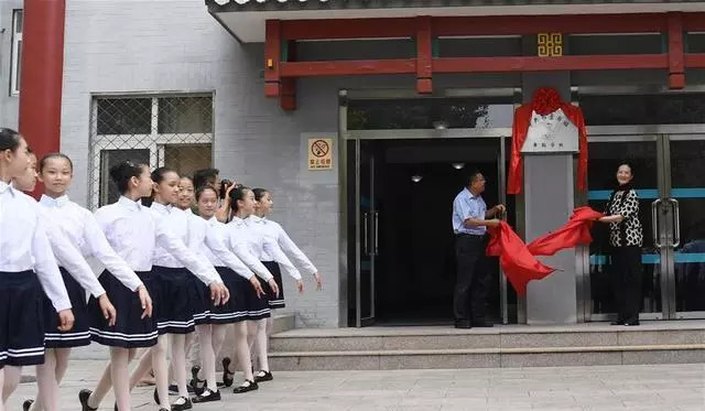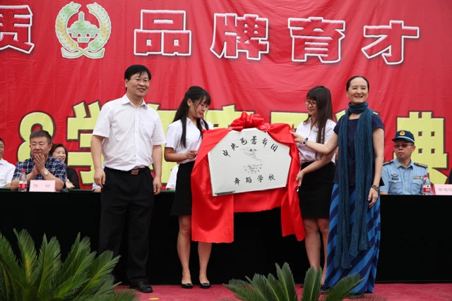 中央芭蕾舞團(tuán)團(tuán)長(zhǎng)馮英(右一)為中央芭蕾舞團(tuán)舞蹈學(xué)校揭牌