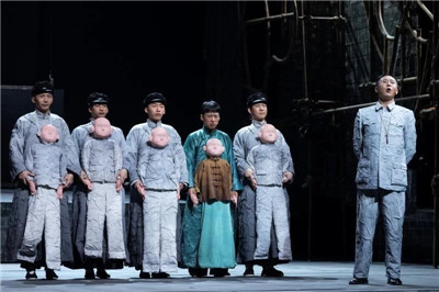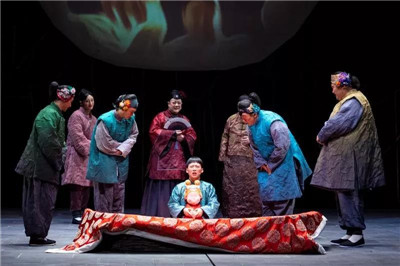 在此次創(chuàng)作中,方旭力邀王琛、胡天驥、劉釗、阿寬、周飛、胡水、李予多等各領(lǐng)域的藝術(shù)家加盟,在舞美、服裝、音樂、偶等層面進行了大膽的嘗試。舞臺上八塊坡度平臺,不時開合,靈動多變的創(chuàng)造出牛宅、街市、學(xué)校等等空間,讓觀眾感受到充滿想象力的舞臺空間。周飛、周琦的現(xiàn)場伴奏,更是給演出一抹全新的亮色,充滿現(xiàn)代氣質(zhì)的音樂混搭上傳統(tǒng)的鑼鼓經(jīng),把《牛天賜》中角色的內(nèi)心展現(xiàn)得淋漓盡致。此次以現(xiàn)代審美角度營造全新的老舍戲劇印象,打造出一部既充滿極簡美學(xué),又具有豐富想象力和趣味性的當(dāng)代話劇作品,也是方旭導(dǎo)演“大寫意”戲劇風(fēng)格的一貫追求。