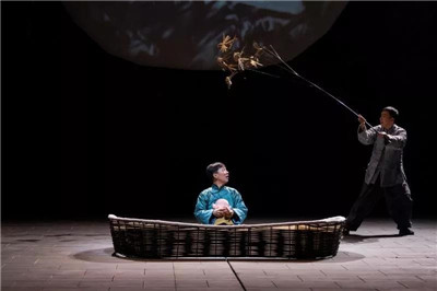 更可圈點的是,方旭導(dǎo)演首次嘗試將“人-偶結(jié)合”的表演方式融入到演員表演和舞臺視覺中,從而構(gòu)建出外在形象與內(nèi)心感受的雙重表演空間。這在國內(nèi)戲劇舞臺并不多見的“偶”,為“嬰兒”的呈現(xiàn)成功加分,也為舞臺表現(xiàn)方式推上了一個新的臺階,演員們既是角色又是操縱者,有了“偶”的加入,角色們自由的上天下水,更在舞臺上上演了一出精彩的“武俠片”,極富有想象力。