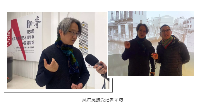 通過介紹,大家關(guān)注到了本次代表中國的這四位藝術(shù)家,盡管作品不同,但他們的理念、精神背后其實是非常東方化的,而策展人北京畫院副院長吳洪亮也是將中國人或者東方人特有的思維,貫穿到展覽里面。尤其是展廳的空間,他還利用中國園林中的“借景”概念,和西方建筑里的“透明性”概念相呼應(yīng)。