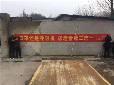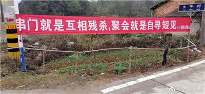 當(dāng)?shù)毓ぷ魅藛T掛上了防疫宣傳標(biāo)語橫幅