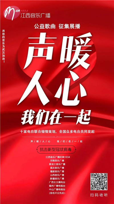 近日,由江西音樂廣播·經(jīng)典1034頻率等全國十家廣播電臺聯(lián)合發(fā)起的“聲暖人心 我們在一起”抗擊疫情公益歌曲大型征集展播活動正在火熱進(jìn)行中。這次活動涌現(xiàn)出了不少優(yōu)秀作品,其中歌曲《我愛的人啊你別哭》就是頗具代表性的一首。