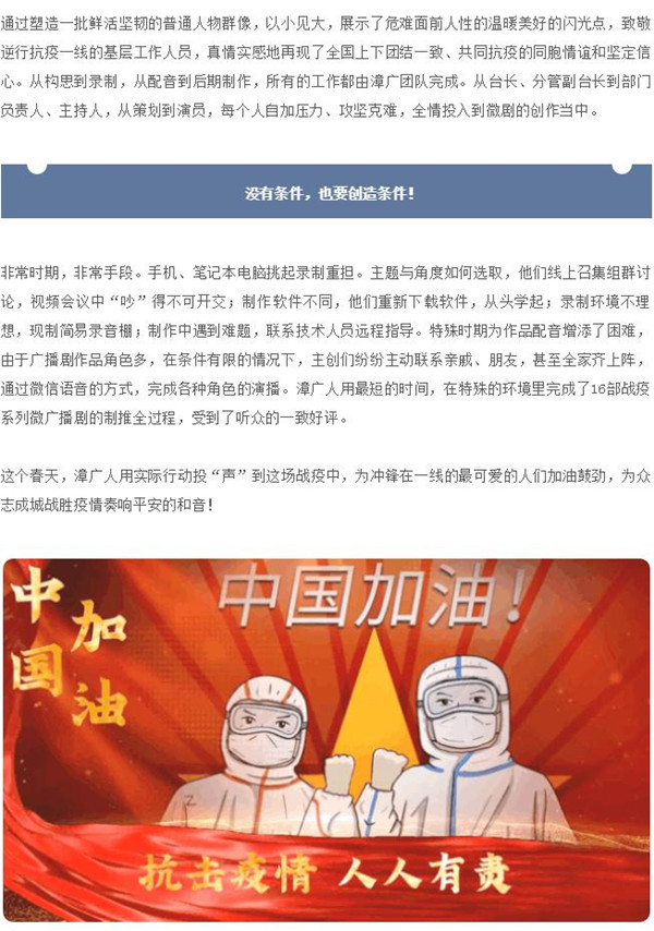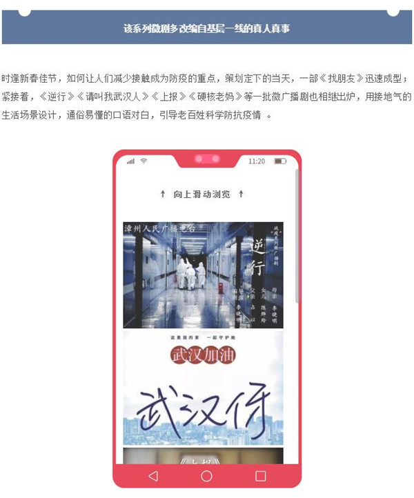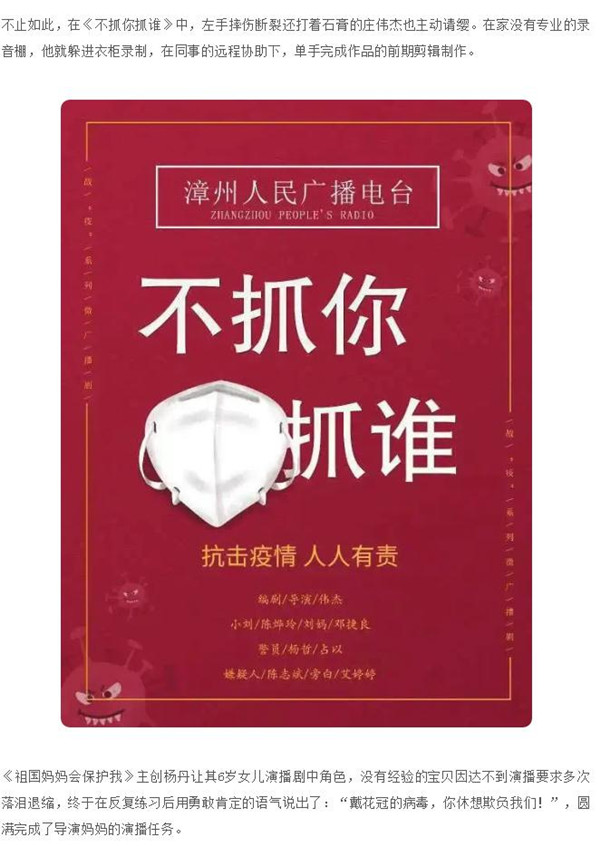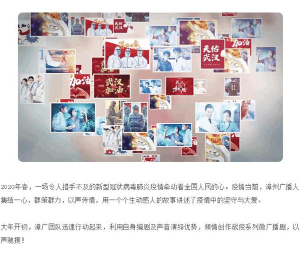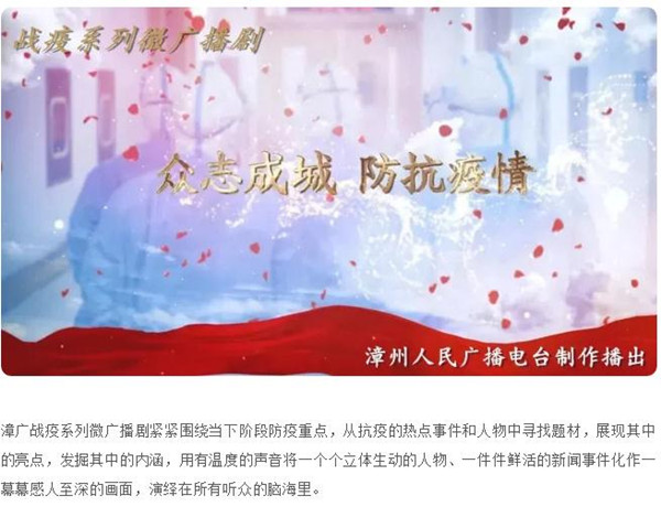 ? 第一組微廣播劇:《祖國媽媽會保護(hù)我》《暖》《平民英雄》《同心戰(zhàn)疫》《請叫我武漢人》