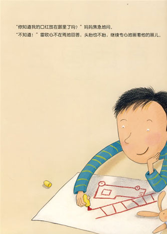 哦!原來(lái)媽媽要找的口紅就是雷歐的畫(huà)筆,