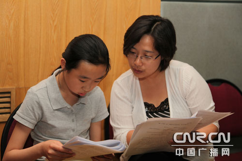 楊馨悅小朋友錄音前認(rèn)真的準(zhǔn)備,李佳阿姨耐心的指導(dǎo)