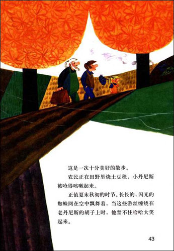 “現(xiàn)在三個丹尼斯走進玫瑰叢里去了!蹦棠陶f,“快,趁他們不在,我們趕緊幫他們織襪子吧!”