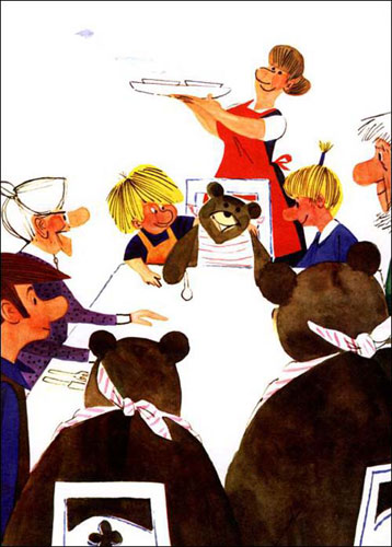 他們那溫馨的小房子,是所有好朋友的家,他們努力讓客人們感覺到像是在自己家里一樣。可是,那些“像在自己家里一樣”的客人們做了些什么事情呢?是誰把丹尼斯家弄得亂七八糟的?又是誰幫助丹尼斯們把家里收拾整齊的?