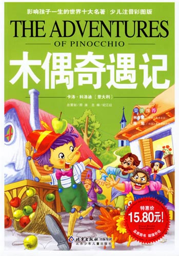 《木偶奇遇記》作者簡介:科洛迪(1826—1890),意大利兒童文學作家,很早就投身于民族復興運動,后從事新聞工作,撰寫社會新聞和戲劇評論。70年代開始發(fā)表童話《賈涅蒂諾漫游意大利》和《米努佐洛》,用生動有趣的故事和對話,向小讀者介紹各方面的科學知識。1880年,在《兒童日報》上連載其代表作《木偶奇遇記》,1883年出版單行本。作品想象豐富,情節(jié)曲折有致,語言生動幽默,寓教誨于生動風趣的故事之中!赌九计嬗鲇洝烦霭婧螅蛔g成多種文字,成為世界著名的兒童文學作品,深得各國小讀者的喜愛。