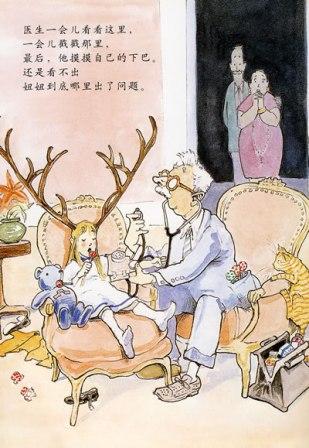 更神奇的是——星期四的早晨,妞妞長(zhǎng)出一對(duì)大鹿角!哦,那可不是短短粗粗的牛角,而是長(zhǎng)長(zhǎng)美美、充滿藝術(shù)感的鹿角!那么,妞妞驚慌失措嗎?不!只不過(guò)她的這一天過(guò)得的確有點(diǎn)不尋常。妞妞一樣穿衣,只是費(fèi)了點(diǎn)功夫;一樣走出房間,只是要?jiǎng)狱c(diǎn)腦筋;一樣下樓吃早餐,只能從扶手上溜下去……妞妞沒(méi)覺(jué)得什么,可是傳來(lái)的是妞妞媽媽的尖叫,而且媽媽昏倒了!