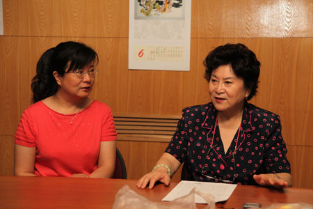 (左一:鄒宇平,右一:劉蘭芳,錄制《話說泰山》)