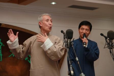 中廣網(wǎng)北京4月29日消息(記者楊小卉)朋友們,為了慶祝五一國(guó)際勞動(dòng)節(jié),我們《文藝之聲》和《北京周末相聲俱樂(lè)部》聯(lián)合舉辦了一場(chǎng)《五一相聲專場(chǎng)》演出,大家熟悉和喜愛(ài)的老藝術(shù)家和中青年演員莫歧、宋德全、劉穎、陳涌泉、王玉、張志強(qiáng)、賈玲、白凱南、陳金利、王亮、陳彥波、羅斌、陳一、路遙為大家獻(xiàn)上了拿手的段子,賈玲、白凱南的一段金庸、瓊瑤、大長(zhǎng)今等各個(gè)版本的《大話捧逗》讓臺(tái)下觀眾大笑不止,頻頻響起喝彩和口哨聲;為了慶祝節(jié)日,宋德全特別返場(chǎng)了一段有趣的《工人贊》;陳金利和王亮師徒特別奉獻(xiàn)了一段快板《立井架》,歌頌的正是大慶石油工人的事跡,形式也是很少見(jiàn)到的對(duì)口式快板;莫歧老先生一露臉,立刻迎來(lái)碰頭彩!“我呀,一個(gè)月來(lái)一次”,一句尖聲細(xì)語(yǔ)的“告白”,讓觀眾爆笑不止,莫老突然醒悟,趕緊解釋“是,是,是一個(gè)月來(lái)一次咱俱樂(lè)部,可,可,可不是生理衛(wèi)生啊”,大家笑聲更大啦!相聲界知名演員劉穎是《相聲俱樂(lè)部》當(dāng)紅壓軸,他和年過(guò)七旬仍思維敏捷、聲音洪亮、底氣十足的陳涌泉先生的合作,更是形神兼?zhèn),讓大家笑的開(kāi)懷,樂(lè)得過(guò)癮!