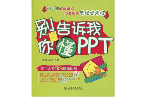 隨著中國市場經(jīng)濟的迅猛發(fā)展,城市化進程的加快,在書業(yè)方面,職場圖書迅速崛起。除了勵志圖書和小說,職場圖書是否還有更加新穎的形式?2010年北京大學(xué)出版社出版的《別告訴我你懂PPT》可謂在職場書領(lǐng)域找到了新靈感。