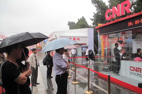 聽眾駐足觀看文藝之聲節(jié)目直播室現(xiàn)場(chǎng)訪談(記者呂煒 攝)