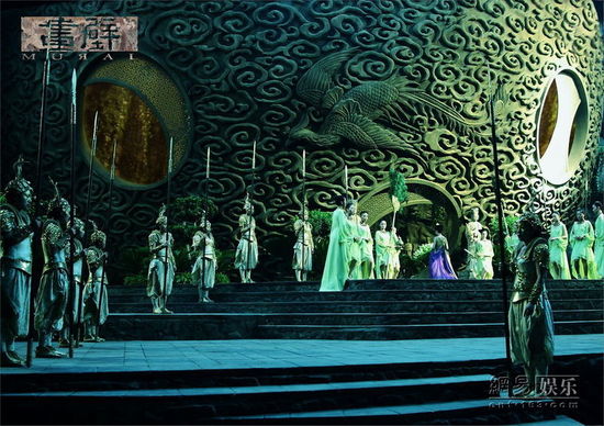 不過(guò)實(shí)景搭建,只是茶居最終成像的一部分。從電腦特效完成圖來(lái)看,茶居將會(huì)置身于無(wú)際云海的山澗之中,背靠崖壁,宛若重兵布陣的堡壘。然而導(dǎo)演陳嘉上卻透露,其實(shí)這個(gè)場(chǎng)景,完全跟打打殺殺無(wú)關(guān):“茶居是仙境主人帶領(lǐng)仙女們吃東西,接待客人的地方。影片中將有一些重要的戲份,發(fā)生在這里! 不過(guò)談及茶居與北京奧運(yùn)會(huì)開(kāi)幕場(chǎng)館鳥(niǎo)巢的相似度,陳嘉上則表示只是神似而已,原本茶居的概念是鏤空的純圓形,但為了內(nèi)部空間效果更加震撼,才進(jìn)行了改造。
