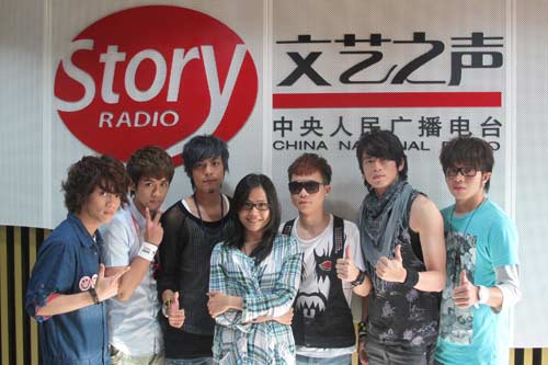 主持小釗和魔幻力量在直播室合影(記者呂煒 攝)