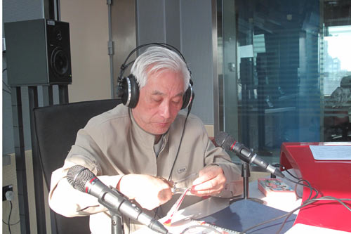 北京剪紙傳承人靳鶴年做客直播室現(xiàn)場剪紙(記者李煒填 攝)
