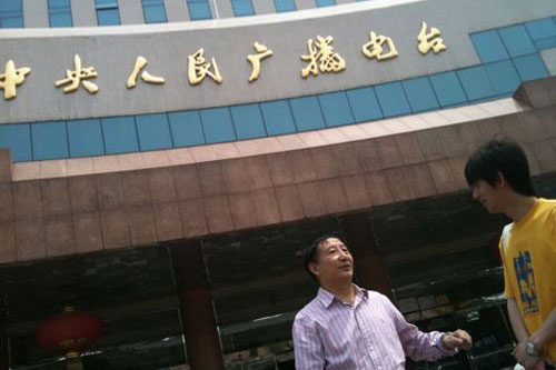 方毓仁先生和編輯呂煒在中央臺大樓前交流