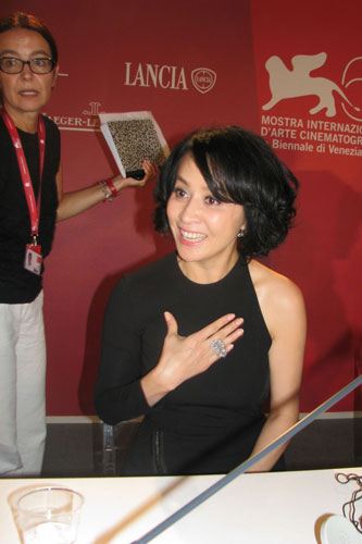 劉嘉玲:”武則天是非常有名的女皇帝,對(duì)我而言是又熟悉又遙遠(yuǎn),我接到這個(gè)角色的時(shí)候確實(shí)很掙扎,因?yàn)楹茈y演出。我做了很多準(zhǔn)備功夫,徐克和王家衛(wèi)也找了很多書(shū)給我看。造型幫了我很大的忙,我穿著衣服在鏡子。