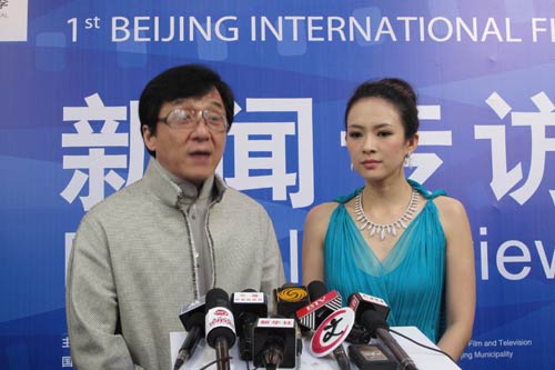形象大使成龍和章子怡接受專(zhuān)訪(記者呂煒 攝)