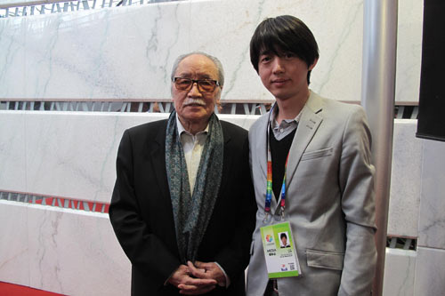 電影表演藝術(shù)家葛存壯和記者在專訪現(xiàn)場合影