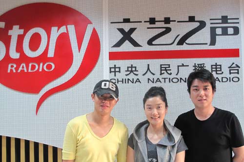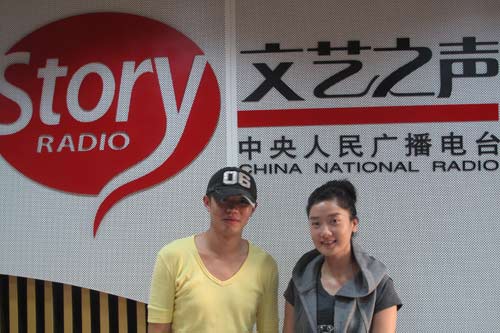 鳳凰組合成員曾毅和玲花做客直播室(記者呂煒 攝)