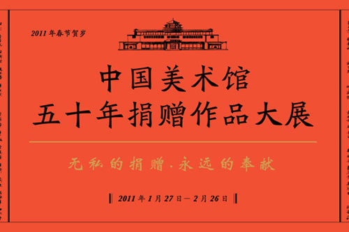 2011年新春之際,“中國美術(shù)館五十年捐贈作品大展”正在展出。這是中國美術(shù)館所藏捐贈作品的一次精選和首次集中亮相,畫品包括中國畫、油畫、雕塑、版畫、漫畫、素描、民間美術(shù)等作品達(dá)800多件,濃縮呈現(xiàn)了中國美術(shù)館接受藝術(shù)捐贈的歷程,彰顯捐贈者無私奉獻(xiàn)的崇高精神。