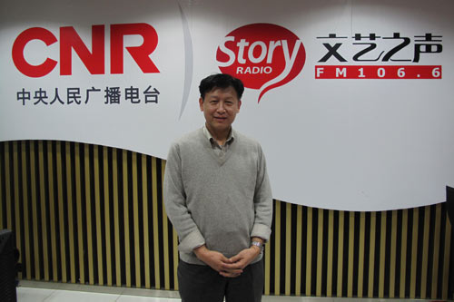 話劇《與妻書》出品人、廣東省話劇院院長柏崇新在直播間留影(記者呂煒 攝)