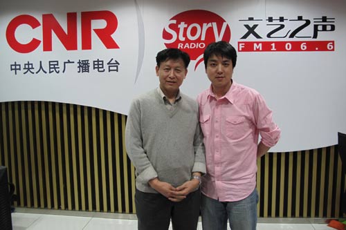 柏崇新和主持人阿杰合影(記者呂煒 攝)