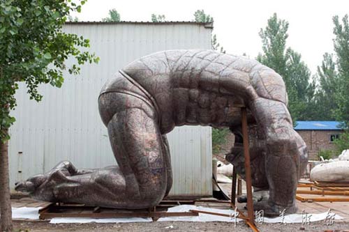 在中國美術館大門口,擺放了丘敏君作者創(chuàng)作的2010年創(chuàng)作的作品《彎曲的維度》,現(xiàn)場一個高7.8米的彎曲的不銹鋼人體像,形象地展示了以“建構之維”為主題的展覽特點。本次展覽共展出50多件組作品,除了各位藝術家的代表性作品外,數(shù)十件新作是第一次和公眾見面。受邀參展的藝術家中,包括了中國藝術研究院當代藝術院院長羅中立、藝術總監(jiān)葉永青、中國美術學院院長許江等國內一線創(chuàng)作者。
