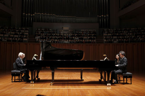 中廣網(wǎng)北京11月14日消息(記者 呂煒)11月12日晚,闊別鋼琴獨(dú)奏舞臺(tái)5年后的俄羅斯鋼琴家、指揮家阿什肯納齊和他的兒子沃夫卡一起走上了中國(guó)國(guó)家大劇院音樂廳舞臺(tái),獻(xiàn)上一臺(tái)精彩的雙鋼琴演奏音樂會(huì)。兩人間的默契合作,使得音樂流淌出來(lái)的美感,讓聽者如癡如醉,90后的觀眾更是直言“震撼。”