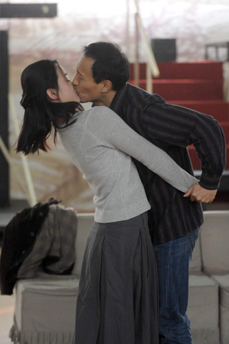 演員朱杰和王洛勇在戲中的激情接吻一場(chǎng)戲(ncpa 供圖)
