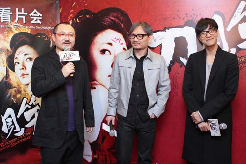 新片《畫皮2》中的三人行,從左至右:導演烏爾善、監(jiān)制陳國富和演員陳坤