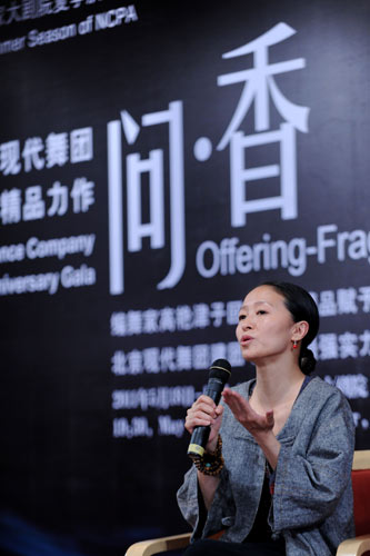 北京現(xiàn)代舞團(tuán)藝術(shù)總監(jiān)高艷津子在暢談舞蹈作品(ncpa 供圖)