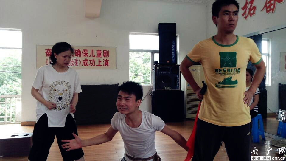 推開一扇已經(jīng)沾滿鐵銹的大門,避開院子的鋸聲、電鉆聲,徑直走上樓梯,史國(guó)生和孩子們正在緊張的排練。因?yàn)椴幌氪驍,所以,我們只是靜靜的坐在排練廳的旁邊,其實(shí),稱這里為排練廳倒是有些奢侈,屋子的長(zhǎng)度大約也只有8米如此。他們正在排演的是著名作家峻青的小說《黎明的河邊》,為的是備戰(zhàn)7月初在江蘇的巡演。這是中國(guó)兒童文學(xué)百年百部經(jīng)典的作品之一,曾經(jīng)感動(dòng)、鼓舞過幾代的小讀者?粗欢味闻啪毜募(xì)節(jié),我的眼眶濕潤(rùn)了......