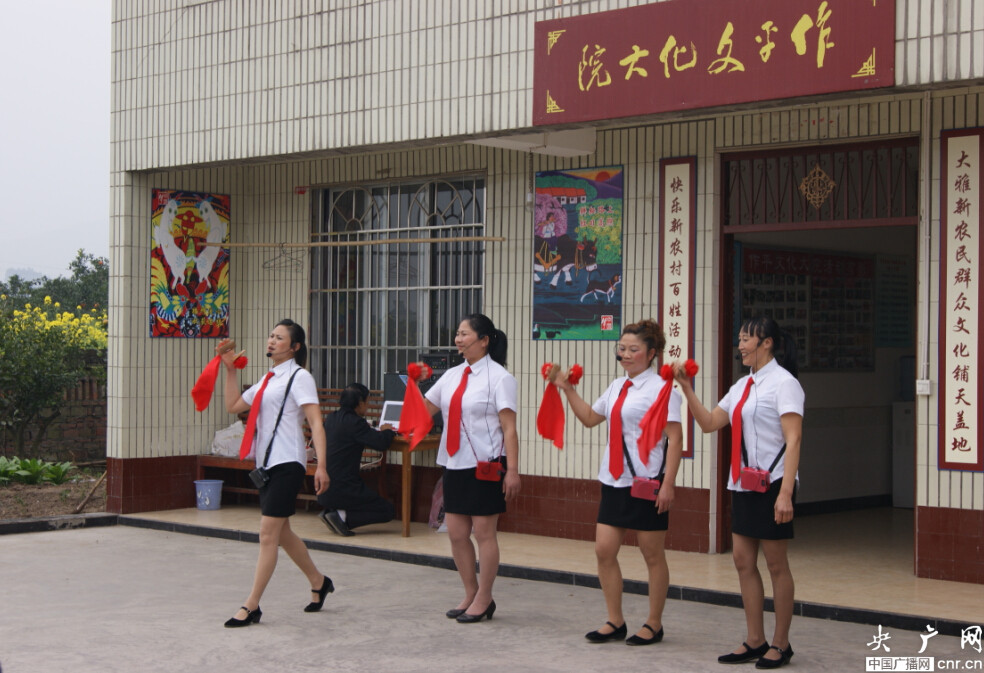 有演出的時候,鄉(xiāng)親們這個帶米那個帶菜,這個做飯那個洗碗。有些奶奶或者外婆想唱歌跳舞,但又得帶孩子。沒事,你家的孩子就是大家的孩子,輪流帶。舞臺和觀眾席沒有明顯的分界線,總之就是一起唱一起跳,圖個樂。有時演出隊伍還能沖出桂花村甚至丹棱鎮(zhèn),給更多人表演,前不久王作平就帶領(lǐng)桂花村文藝隊在丹棱縣的“大雅堂”為全縣鄉(xiāng)親父老演出。丹棱縣文廣新局副局長祝小敏說,王作平用事實證明了,鄉(xiāng)村文化亦能登大雅之堂。