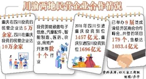 據(jù)了解,民營經(jīng)濟(jì)作為推動成渝地區(qū)經(jīng)濟(jì)發(fā)展的重要力量,發(fā)揮了生力軍的作用。四川省工商聯(lián)的統(tǒng)計顯示,近年來,兩地民營企業(yè)相互投資領(lǐng)域涵蓋電子信息、汽摩配件、智能制造、醫(yī)藥、農(nóng)業(yè)、房地產(chǎn)開發(fā)等幾十個行業(yè)。重慶在四川投資的民營企業(yè)達(dá)5萬余家,四川在重慶投資的民營企業(yè)達(dá)10萬余家。2018年四川引進(jìn)重慶投資到位1457億元,重慶引進(jìn)四川投資到位1696億元。在示范區(qū)合作上,四川廣安依托渝廣共建機(jī)電產(chǎn)業(yè)園,高灘川渝合作示范園區(qū)承接重慶高端裝備制造等產(chǎn)業(yè),入駐民營企業(yè)70%以上來自重慶。潼南在川渝合作示范區(qū)建設(shè)中,通過跨地區(qū)共享民營企業(yè)技術(shù)中心等創(chuàng)新平臺、共建智能制造聯(lián)盟等方式加強(qiáng)交流合作,2019年,四川民營企業(yè)在潼南投資25.65億元。此外,川渝兩地工商聯(lián)于2006年建立了跨區(qū)域民營經(jīng)濟(jì)合作機(jī)制,截至目前已舉辦9屆泛成渝經(jīng)濟(jì)區(qū)商會合作峰會,共簽約項(xiàng)目179個,金額達(dá)1033.4億元。