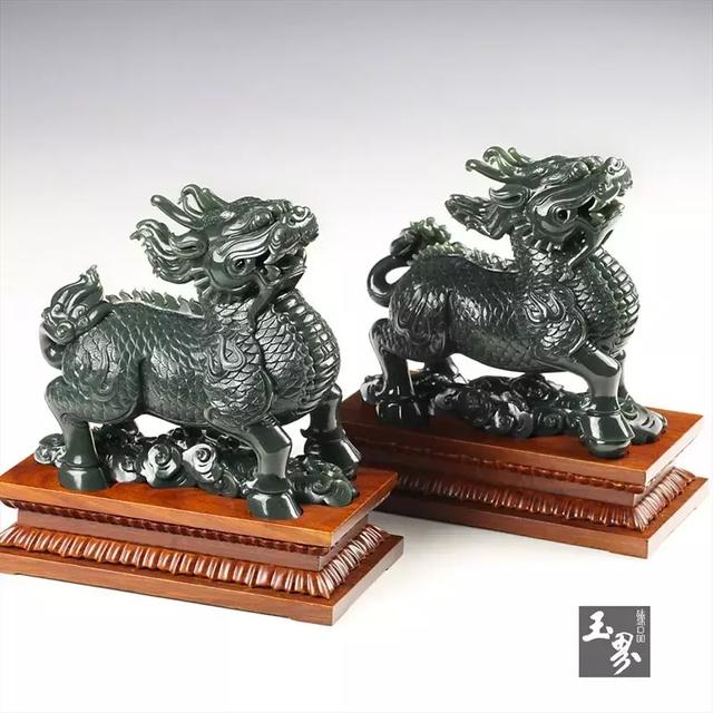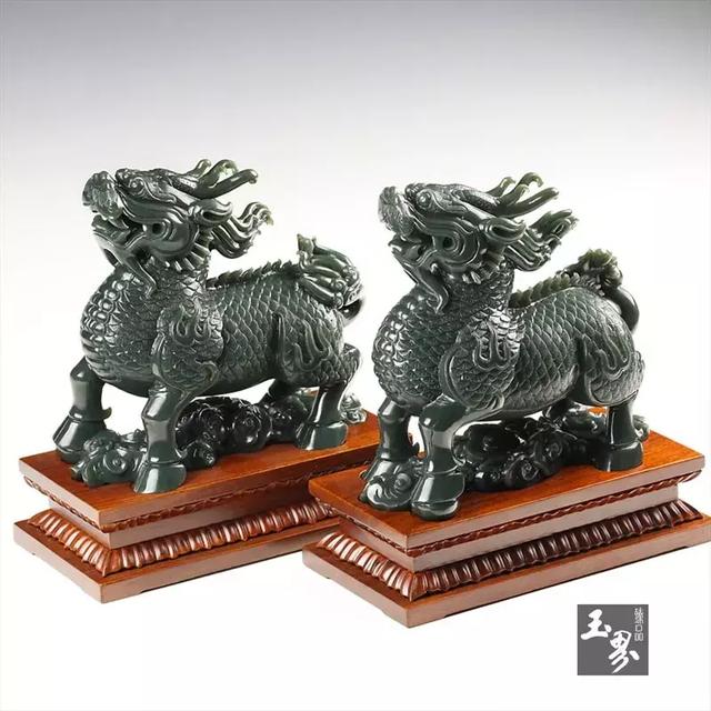 ▲青玉擺件-麒麟對(duì)獸